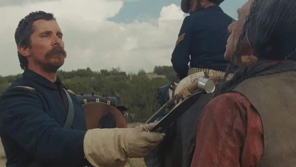 The film stars Christian Bale as Captain Joseph Blocker, a U.S. Army officer who is tasked with escorting a dying Cheyenne war chief, Yellow Hawk (played by Wes Studi), and his family back to their homeland in Montana. Blocker has a long history of animosity towards Native Americans due to his experiences in the Indian Wars, making this assignment particularly challenging for him.